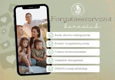 A Nagycsaládosok Országos Egyesülete pályázatot hirdet forgatásszervező munkakör betöltésére heti 30 órás részmunkaidős, határozott idejű foglalkoztatásban. Elkötelezett, a családok támogatását hivatásának tekintő szakembert keresünk nonprofit szervezetünkhöz.