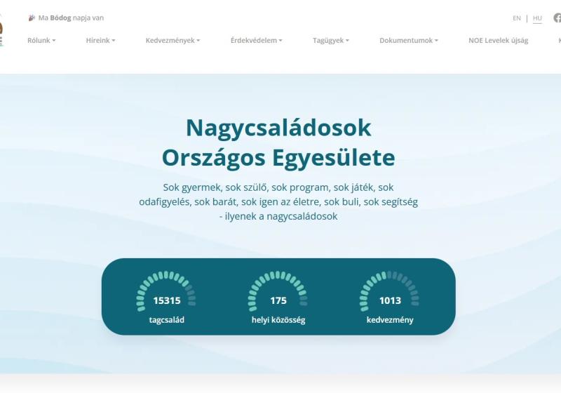 A Nagycsaládosok Országos Egyesületének weboldala új külsőt kapott, így mostantól átláthatóbb, gyorsabb és könnyebben kezelhető, és reméljük, még egyszerűbb lesz eligazodnotok rajta. Igyekeztünk úgy alakítani, hogy gyorsan megtaláljátok mindazt, ami a nagycsaládos mindennapokhoz fontos: híreket, programokat, kedvezményeket, családtámogatásokat, pályázatokat és sok hasznos információt találtok a noe.hu oldalon.