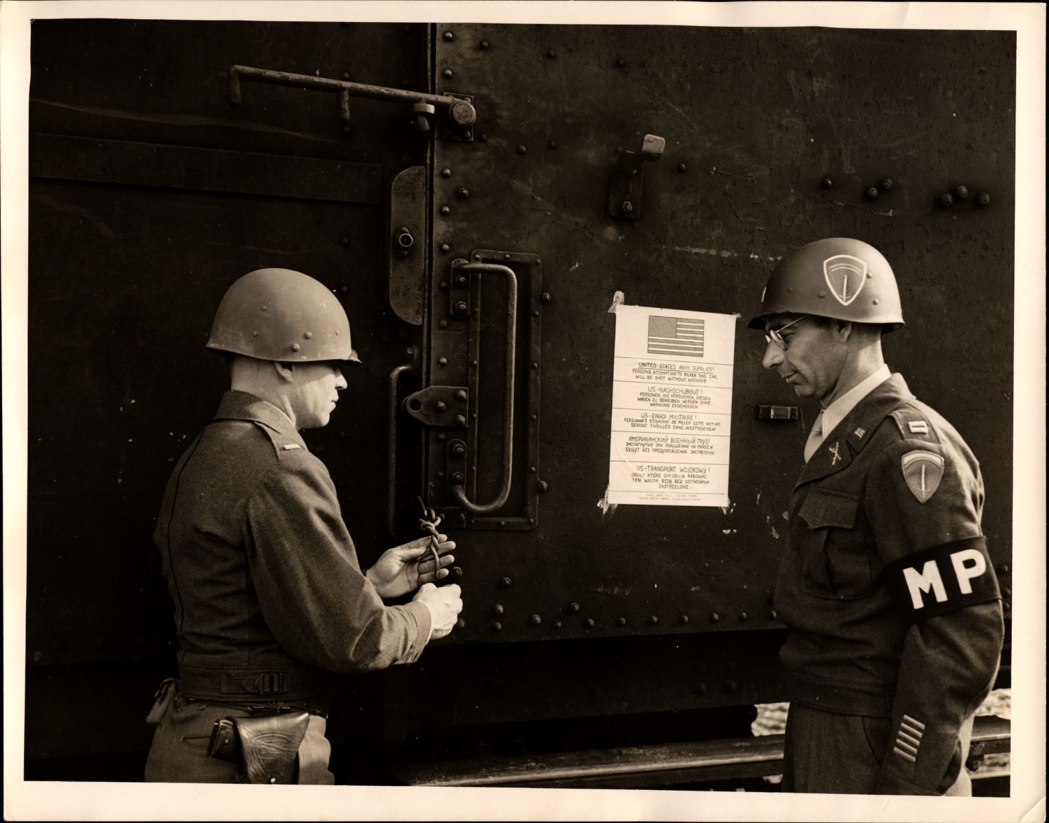 Amerikai katonák az Aranyvonat egyik kocsijának felnyitásakor.