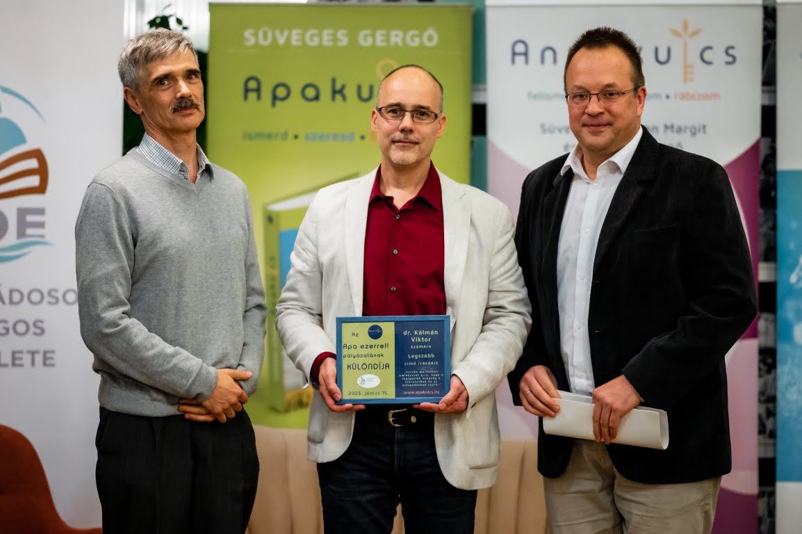 Az Apa ezerrel! pályázat díjkiosztó ünnepségén a 2025-ös pályázat írásait és alkotóit ünnepelték. A NOE két különdíjasa dr. Kálmán Viktor Legszebb c. művével, valamint Bottyán A. Nia Hiányzó darabok c. írásával. A díjakat a NOE elnökhelyettese, dr. Kutassy Jenő adta át.