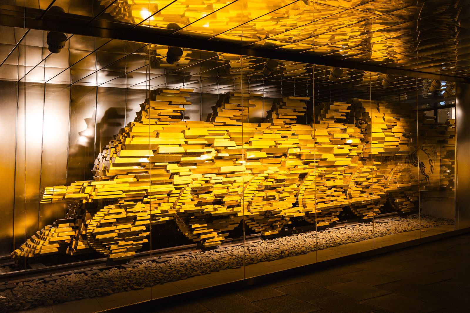 Az Aranyvonat emlékére készült műalkotás a Pénzmúzeumban.